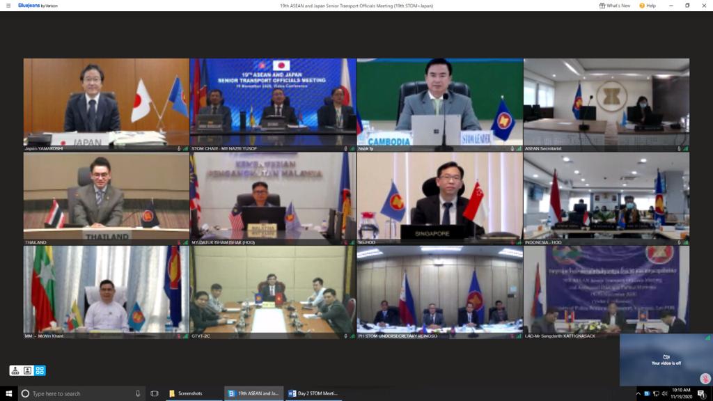 19th ASEAN and China Senior Transport Officials Meeting (19th STOM+China) co-chaired by Yang Mulia Awang Haji Mohammad Nazri bin Mohammad Yusof, Permanent Secretary at the Ministry of Transport and Infocommunications and Mr. Shan Hongjun, Deputy Director General of the Department of International Cooperation at the Ministry of Transport, People's Republic of China. The Meeting reviewed the progress implementation of the 2018-2020 Action Programme of the Revised Strategic Plan for ASEAN-China Transport Cooperation. They also deliberated on the follow-up activities to implement the Joint Statement of ASEAN and China Transport Ministers on "Ensuring Smooth Transport and Logistics to Combat COVID-19 and Reactivate the Economy", which was adopted on 16 July 2020.