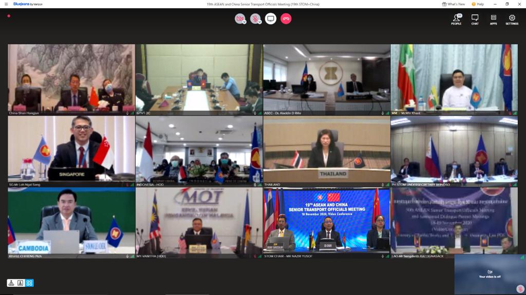 19th ASEAN and China Senior Transport Officials Meeting (19th STOM+China) co-chaired by Yang Mulia Awang Haji Mohammad Nazri bin Mohammad Yusof, Permanent Secretary at the Ministry of Transport and Infocommunications and Mr. Shan Hongjun, Deputy Director General of the Department of International Cooperation at the Ministry of Transport, People's Republic of China. The Meeting reviewed the progress implementation of the 2018-2020 Action Programme of the Revised Strategic Plan for ASEAN-China Transport Cooperation. They also deliberated on the follow-up activities to implement the Joint Statement of ASEAN and China Transport Ministers on "Ensuring Smooth Transport and Logistics to Combat COVID-19 and Reactivate the Economy", which was adopted on 16 July 2020.
