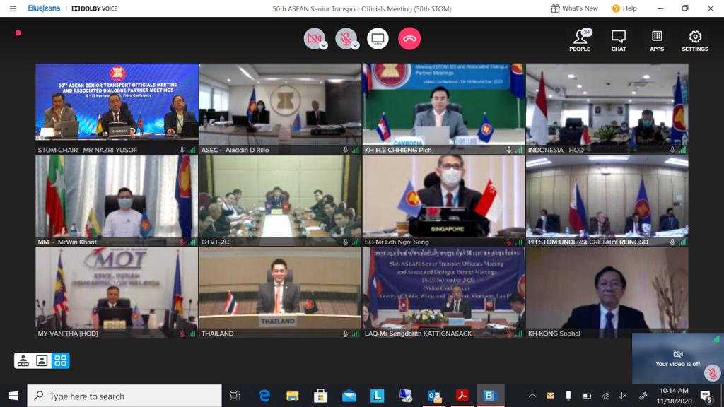 50th STOM, the Meeting discussed and recommended the key outcomes of the Task Force Meeting on the Mid-Term Review of the Kuala Lumpur Transport Strategic Plan (KLTSP) 2016 – 2025, including those activities and projects to be implemented by the various ASEAN Transport Working Groups. The Meeting also discussed transport cooperation with the dialogue partners in preparations for the upcoming 26th ASEAN Transport Ministers Meeting (26th ATM) and Associated Dialogue Partner Meetings scheduled to be held on 24 – 25 November 2020.